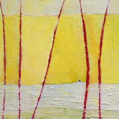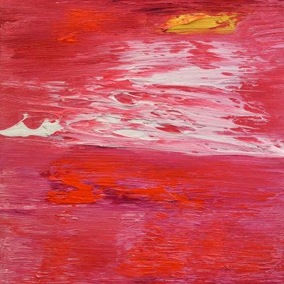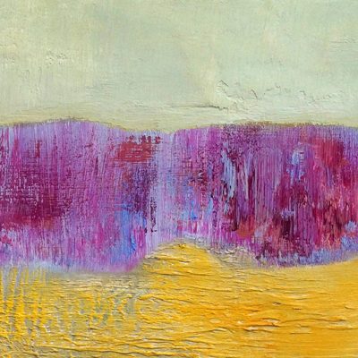 In Fullalove’s exhibition Paintings from Another Place (2015) dark hues predominated, a reflection of personal circumstances at the time. Painting was stripped back to its fundamental elements of composition, balance, and light. In this new exhibition, colour is once again evident. In fact, this current collection of work represents Fullalove’s most vital and startling use hue and tonal contrast to date. Where tonal contrast is most evident is in the trilogy Landscape in Red, Landscape in Blue, Landscape in Yellow, and Surrounding Solitude, the bold juxtaposition of colour is at its most arresting in Red Raw and the orange, red, and magenta of Return to Isolation. The dramatic intensity of colour in these paintings is at times, reminiscent of the expressionist landscapes of Emil Nolde. In many instances, it is Fullalove’s smaller paintings that explore the extremes of colour, flatness of surface or an almost geological layering of paint to create a visceral intensity: their relative size belying their artistic ambition and emotional scope.