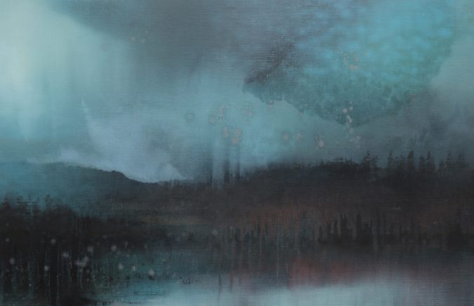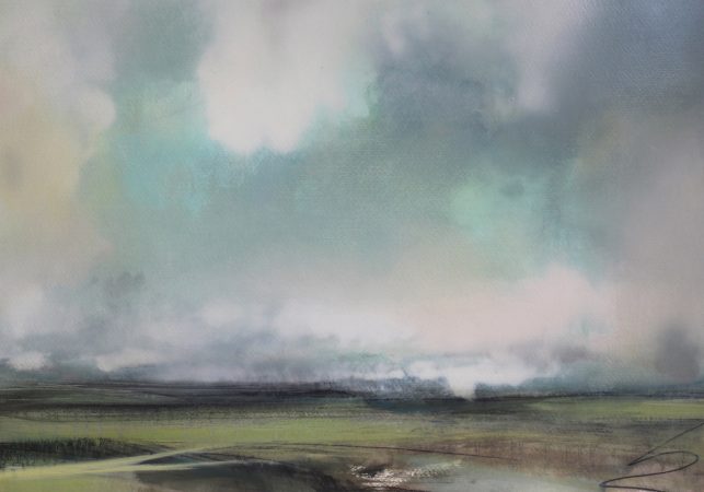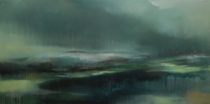 Moments of reflection are at the forefront of creation. Using the paint to develop and encapsulate those moments; to find the metaphorical and literal calm within the storm. However there is no finality to find, only snapshots- like the landscape we walk through, they are ever-evolving and shifting.