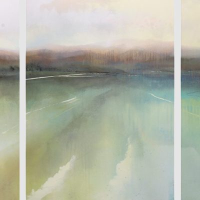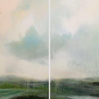 Each location visit is meticulously planned with routes and vistas carefully researched. An immediate priority for the artist is ‘to walk and enjoy the landscape, let the moment sit with me before I use memory to replicate and/or interpret’. In most cases, individual works are completed in the studio utilising notes, sketches and photographs produced on location.