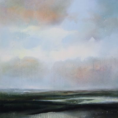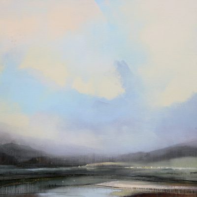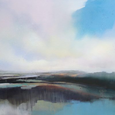 Amelia’s wanderlust has taken her on numerous visits to Scotland, Cornwall and Norfolk. Although the picture titles make reference to particular sites the paintings journey beyond the naturalistic specifics of place. The artistic response is so much more than mere representation. Amelia acknowledges a subtle move towards abstraction and is relaxed about the viewer ‘seeing what they want to see’. In stripping an image down to the key essentials and carefully reflecting on when the painting is finished she reveals a deep interest in ‘how and why the simplest of images can often have the most impact’